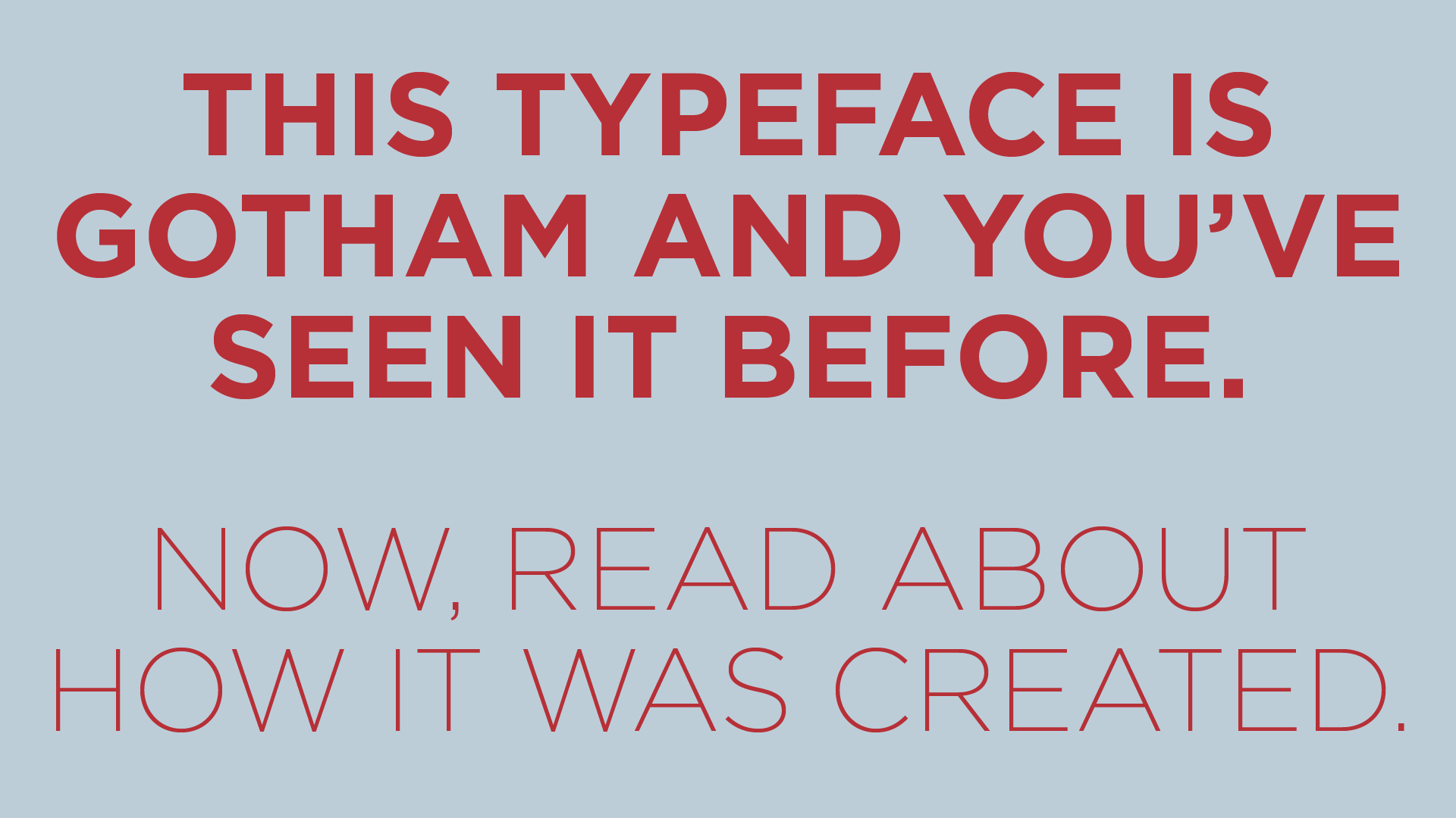 Writing about the biggest typeface of the past 25 years (and I would argue since the release of Helvetica in 1957) was no easy task. With the importance and cultural impact of Gotham, I wanted to make sure I got the story straight for my own curiosity, but also for typographic history.